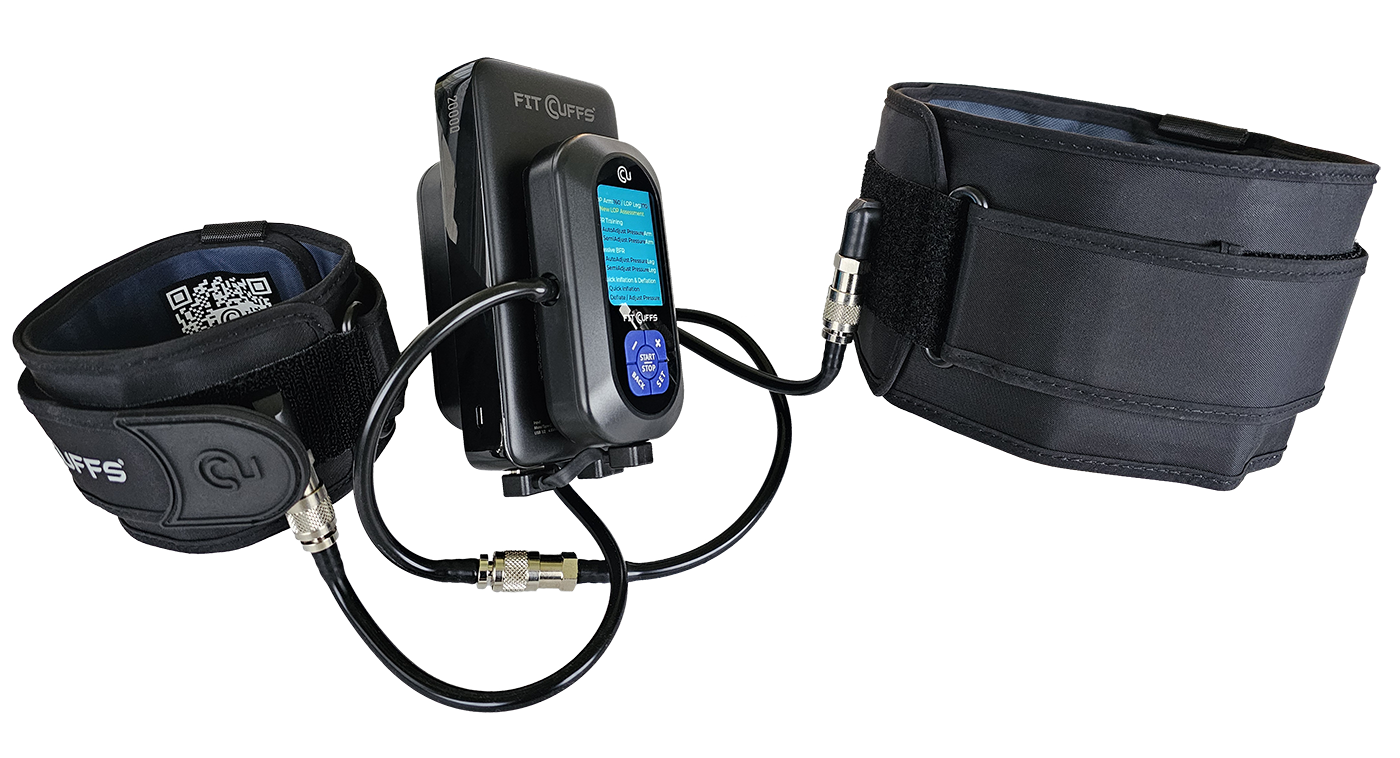 The Fit Cuffs BFR Unit redefines Blood Flow Restriction Training with its unparalleled versatility, precision, and user-friendly design, making it the ultimate tool for anyone serious about BFR therapy and performance enhancement. The Fit Cuffs BFR Unit is at the forefront of Blood Flow Restriction (BFR) training technology, offering the most versatile and user-friendly product on the market. Engineered for optimal convenience, the BFR Unit features Auto-Adjusting, Semi-Adjusting, and Automatic Limb Occlusion Pressure (LOP) functionalities, all while maintaining 100% backward compatibility with existing Fit Cuffs products.