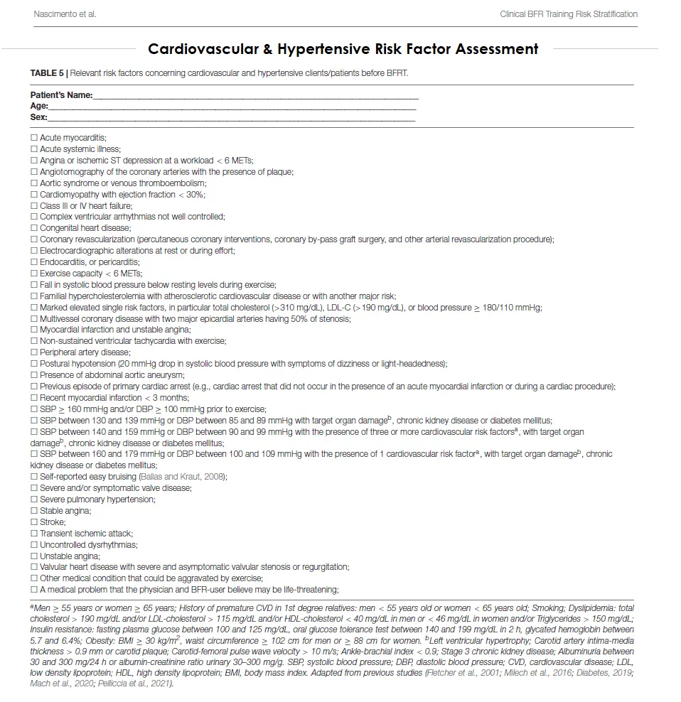 - Nascimento et al. (2022) A Useful Blood Flow Restriction Training Risk Stratification for Exercise and Rehabilitation