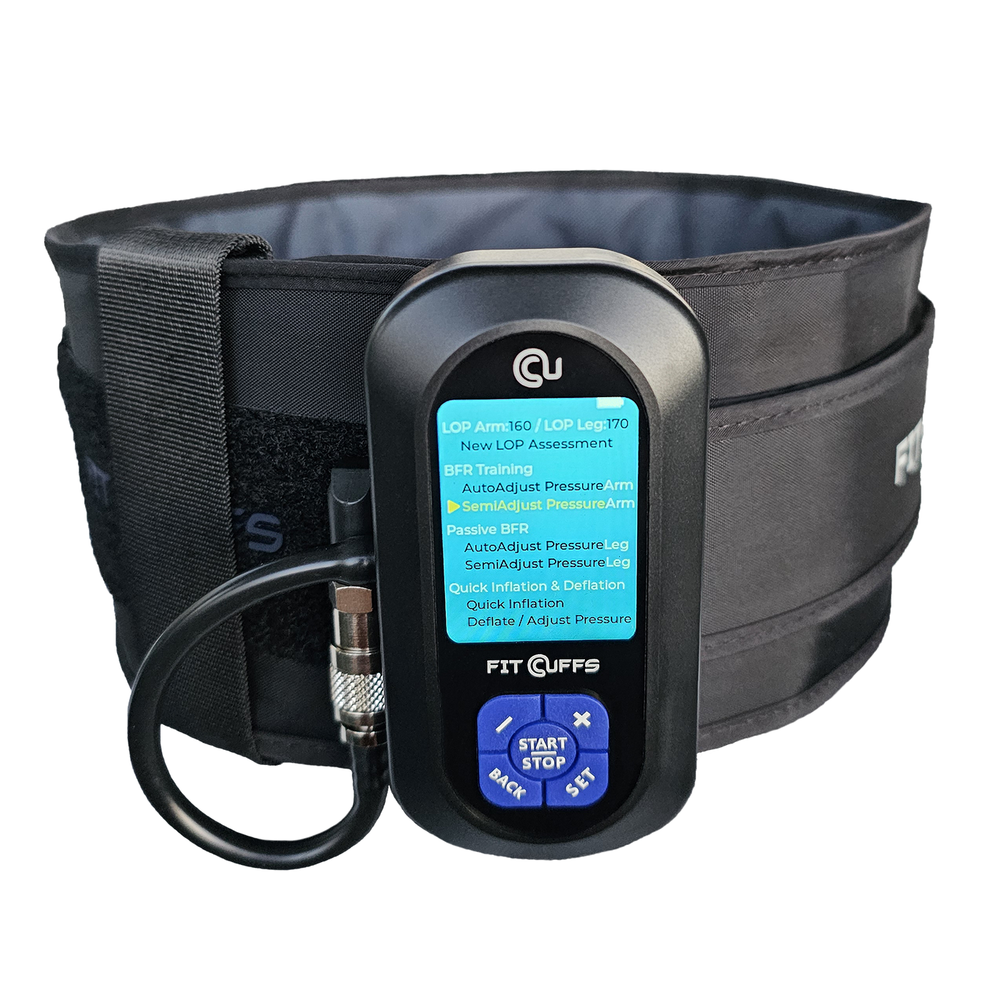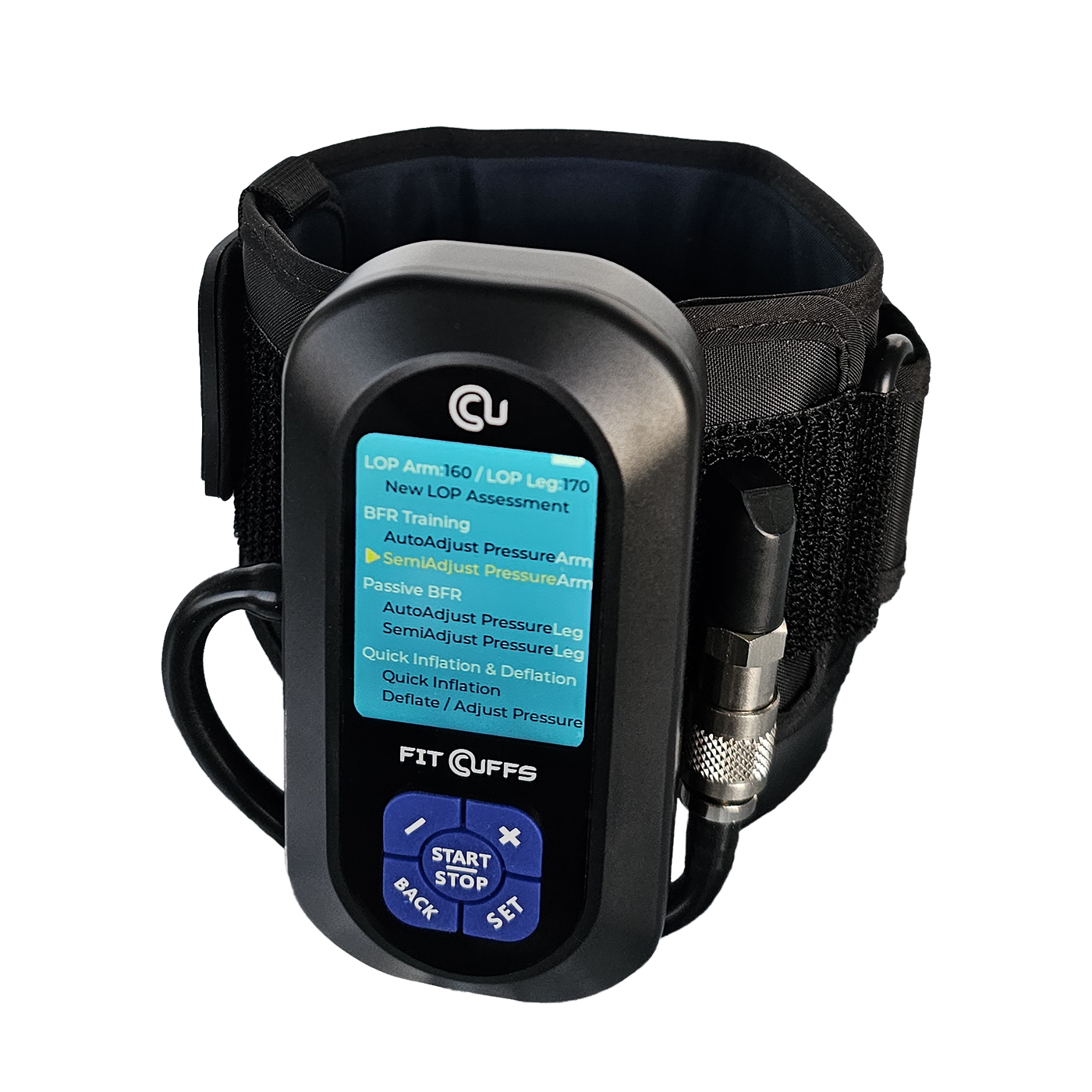 The Fit Cuffs BFR Unit redefines Blood Flow Restriction Training with its unparalleled versatility, precision, and user-friendly design, making it the ultimate tool for anyone serious about BFR therapy and performance enhancement. The Fit Cuffs BFR Unit is at the forefront of Blood Flow Restriction (BFR) training technology, offering the most versatile and user-friendly product on the market. Engineered for optimal convenience, the BFR Unit features Auto-Adjusting, Semi-Adjusting, and Automatic Limb Occlusion Pressure (LOP) functionalities, all while maintaining 100% backward compatibility with existing Fit Cuffs products.